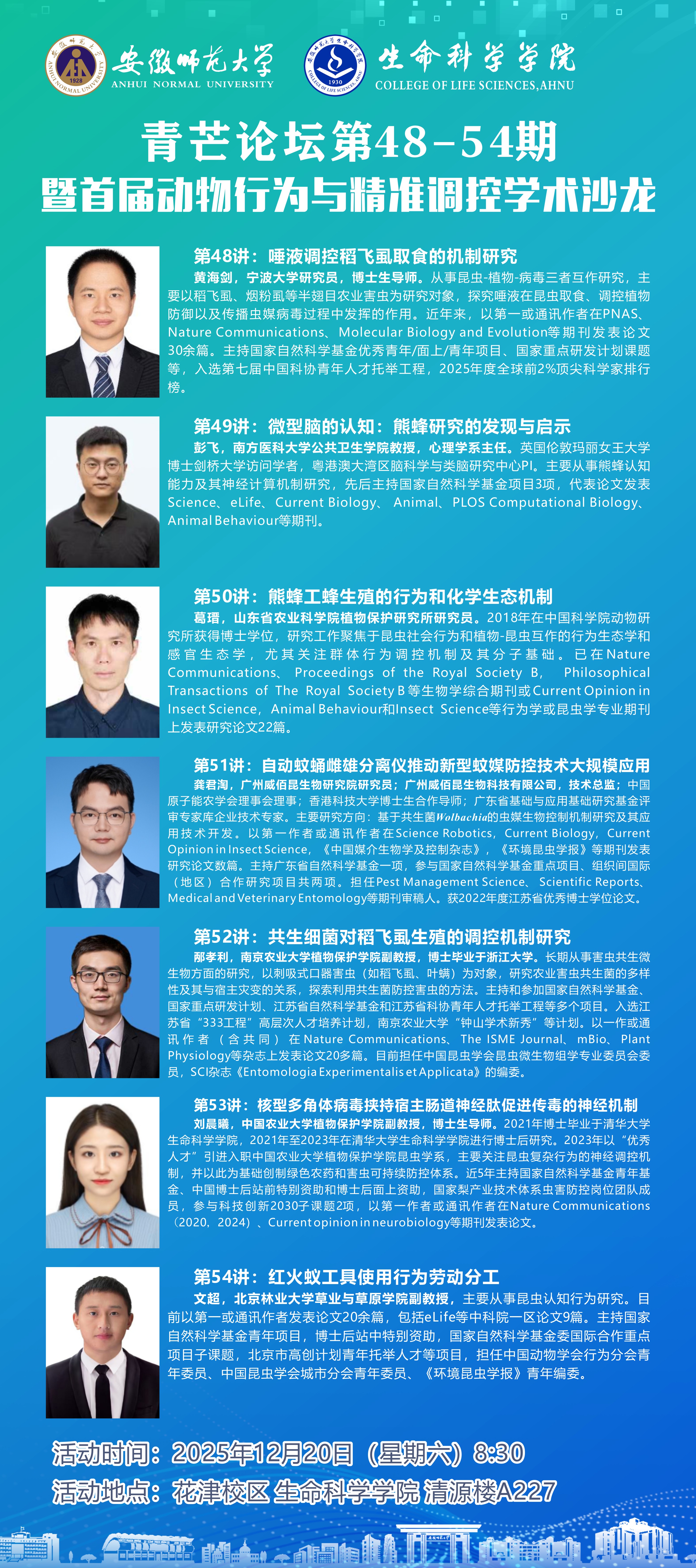 地点:花津校区 生命科学学院清源楼A227报告厅