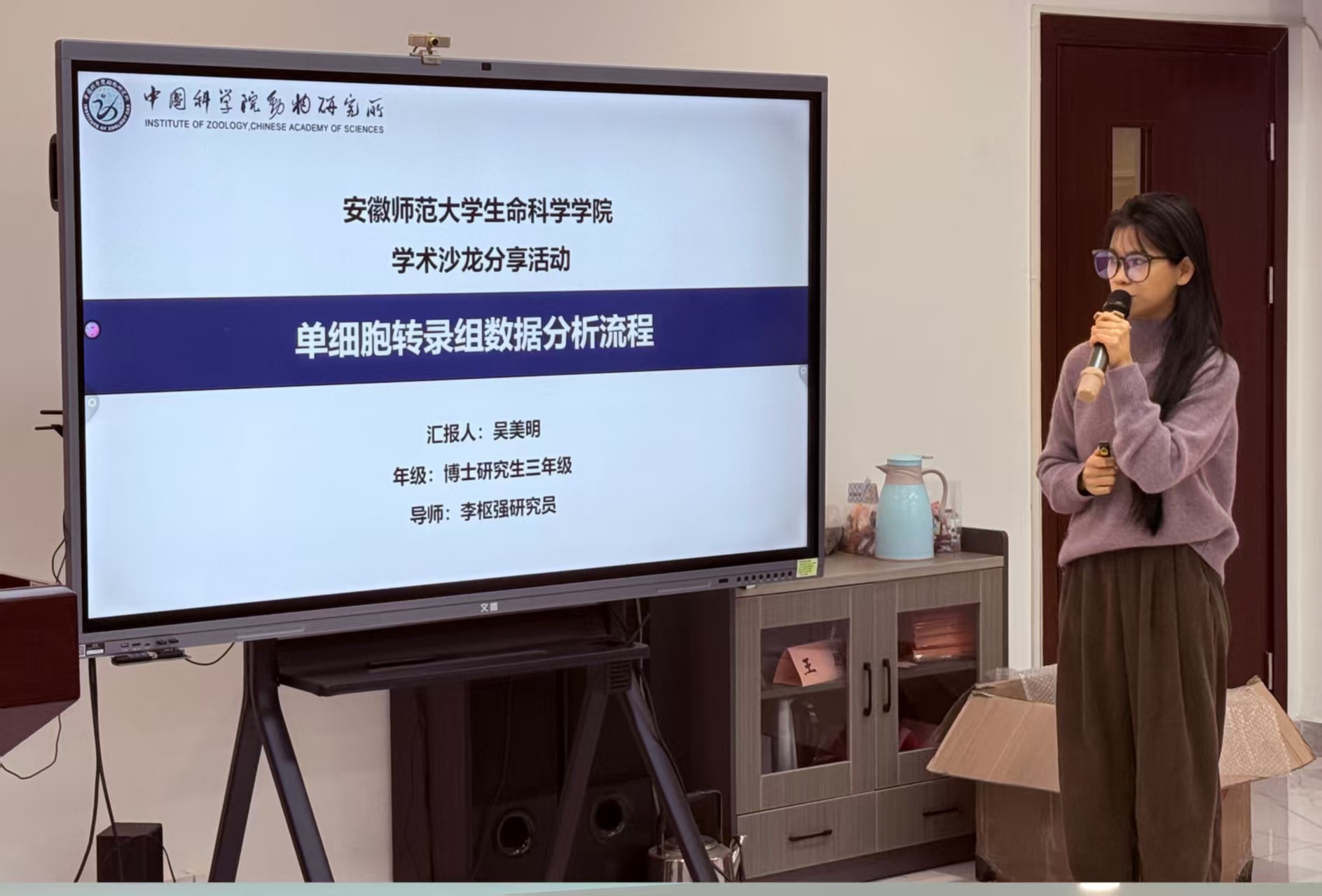 沙龙特邀李文刚、吴美明、吴子锐三位博士生作专题报告。李文刚以《解析生命科学论文:成果发表的高效写作指南》为主题,详细介绍了科研论文的核心架构以及各部分的内在罗辑和撰写技巧。吴美明以《单细胞转录组数据分析流程》为主题,生动展示了单细胞测序技术在解析复杂生命现象中的强大能力,她还分享了跨物种比较、拟时序分析等前沿分析方法。吴子锐以《生物信息学工具与高质量科研图表绘制技巧》为主题,针对如何提升科研成果的可视化表达能力,介绍了生物信息学分析中常用的软件和绘图工具,并结合案例演示多软件协同完成科研绘图与数据分析的高效工作流程。