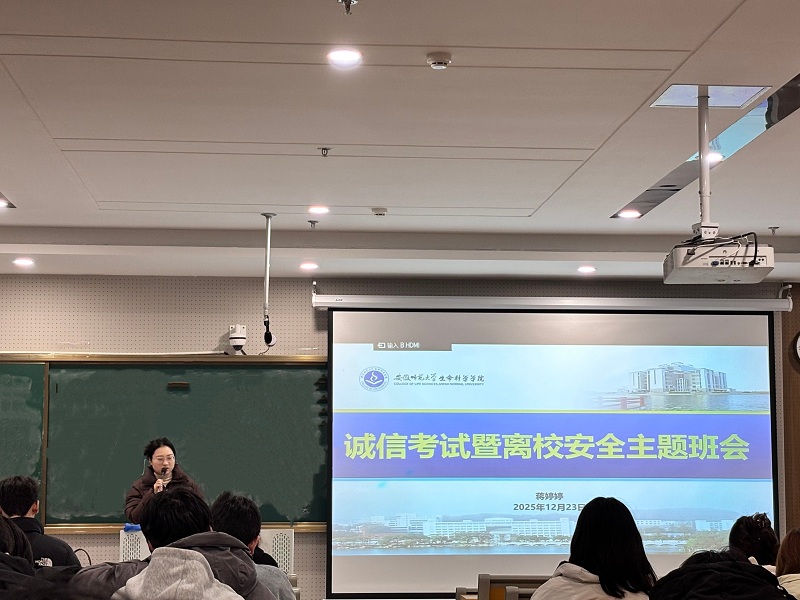 12月23日,2024级生物技术,生物制药和食品科学与工程专业召开诚信教育暨离校安全主题班会,班会由辅导员蒋婷婷主持。