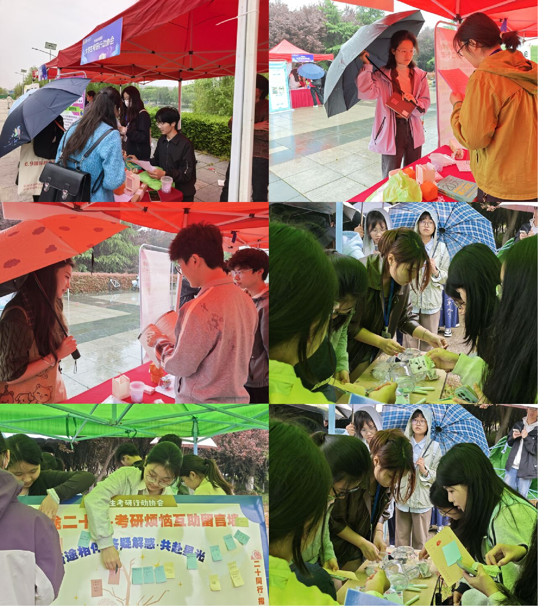 此外,大学生考研行动协会额外设立20周年特色活动展台,收集同学们对自己和社团的期许并设置成“时光胶囊”,约定明年今日一同开启;协会还邀请前来参与活动的同学完成考研烦恼答疑接力,在诉说自己压力的同时一起帮助他人缓解烦恼。活动结束后,大家分分在留言板上留下自己的签名和指纹,为协会二十周年送上美好祝愿。
