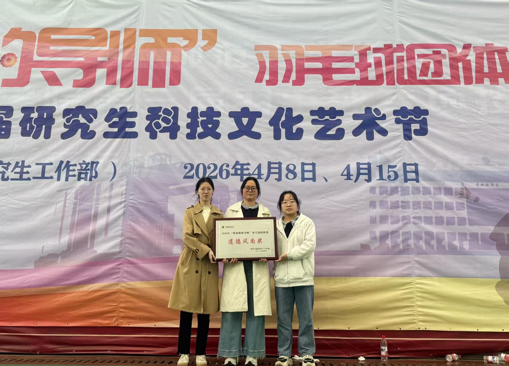 为搭建研究生师生交流平台,营造健康向上的校园氛围,第十八届研究生科技文化艺术节“我和我的导师”羽毛球团体赛于4月8日-15日在花津校区南侧体育馆举行。我院师生代表队由左胜、朱先灿、陈菊红三位导师领衔,联合李文刚、陈龙、蒋广宇、葛慧丽、陈云、汪石六名研究生组成。队员们以球会友、奋勇争先,在赛场上充分展现了团结协作、拼搏进取的良好精神风貌,并荣获“道德风尚奖”。