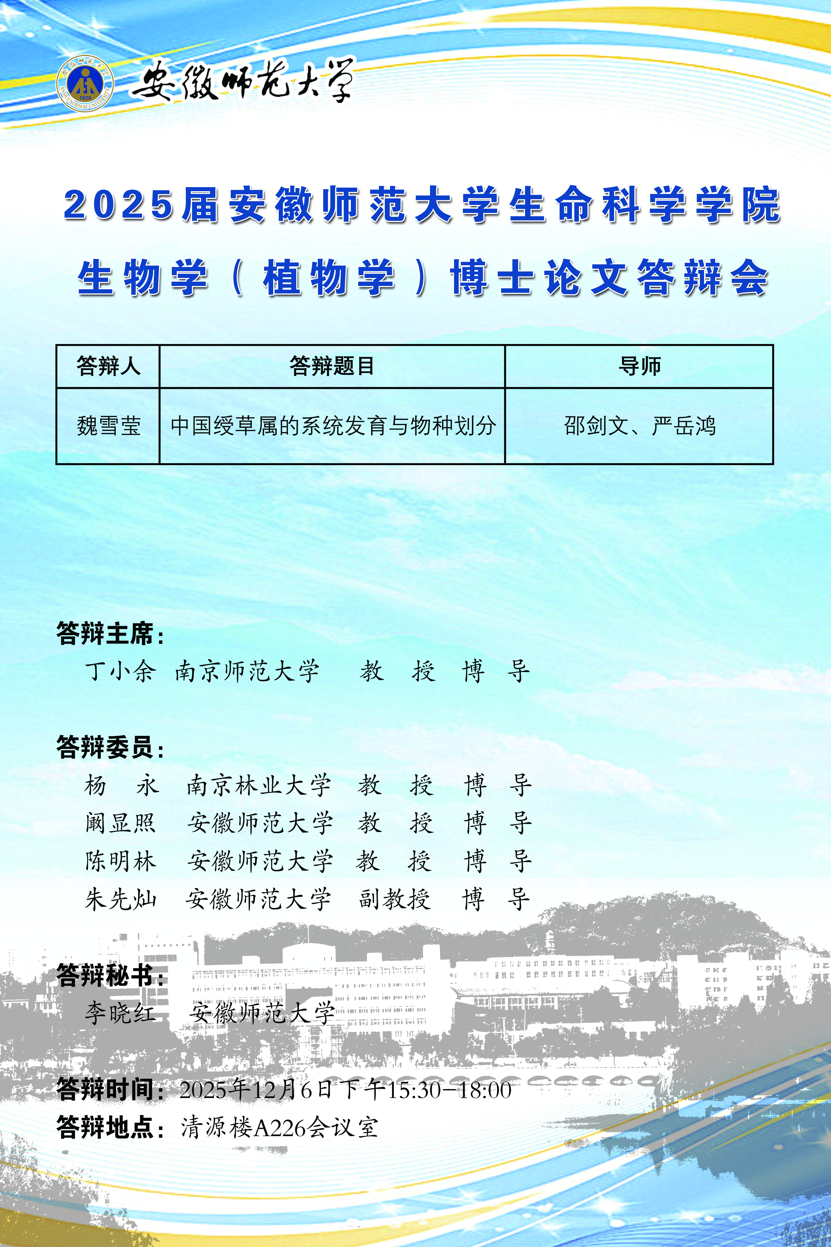 生命科学学院2025届生物学(植物学)专业博士研究生学位论文答辩