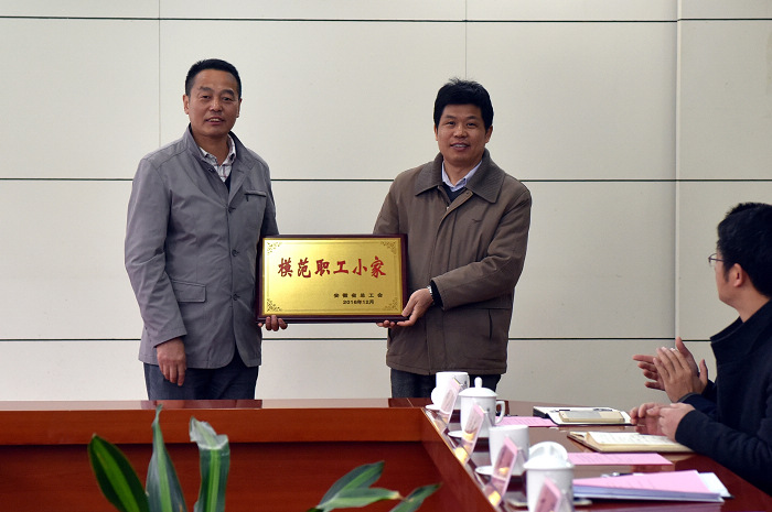 仪式上,凤桦代表安徽省总工会、省教育工会宣读了全省“模范职工小家”等三个奖项的表彰决定。其中,我院成为学校第一个获得“安徽省总工会模范职工小家”荣誉称号的单位,学院党委书记蒋学波接受了奖牌。李琳琦希望获奖单位牢记使命,以这次获奖为工作起点,团结广大教职工,以更加饱满的热情,扎扎实实的为教职工做好服务,不断推进工会工作再上新台阶。