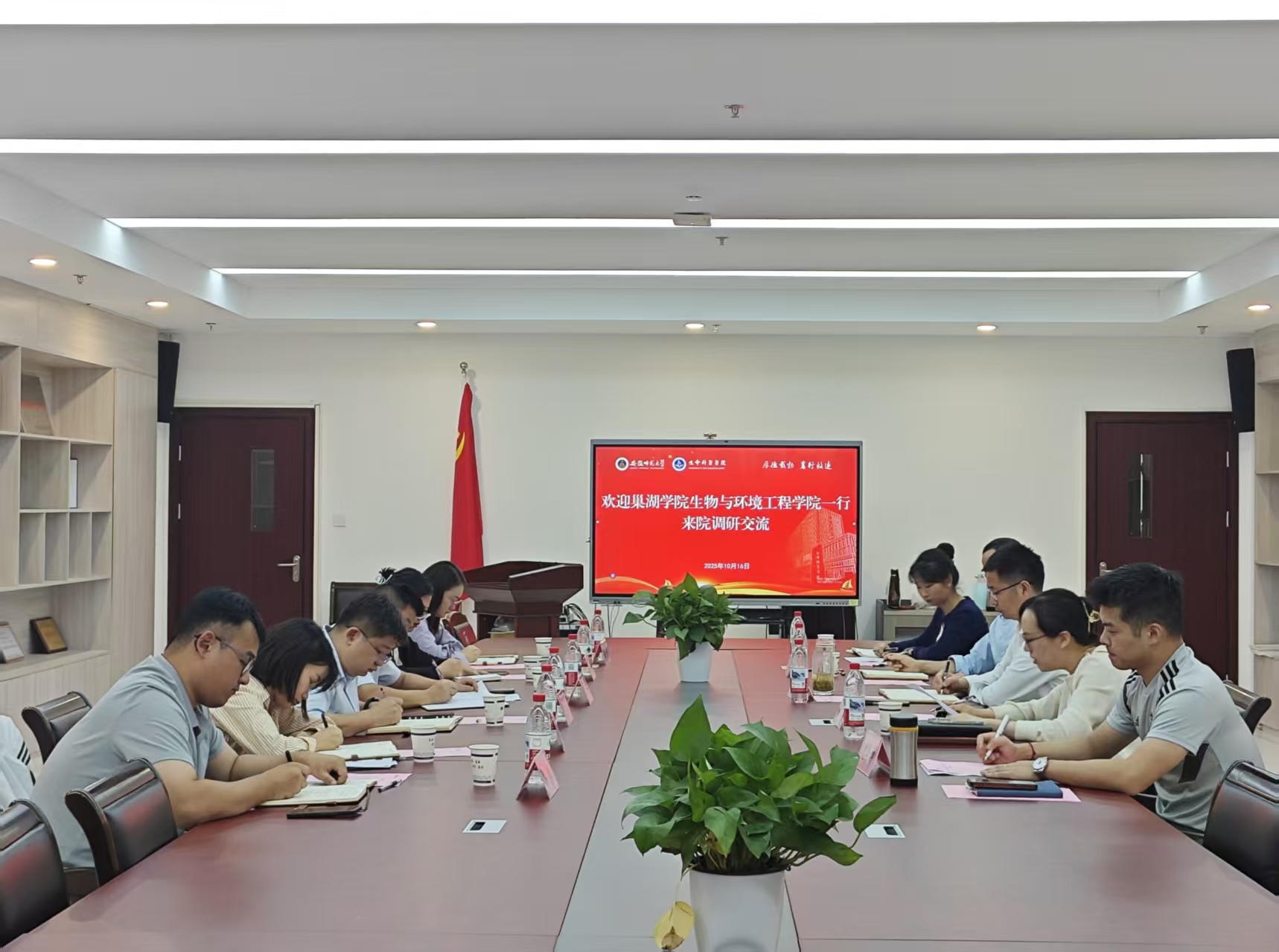 郭超介绍了巢湖学院生物与环境工程学院此次调研的主要目的,双方与会人员围绕共同关心的话题进行了深入交流。调研期间,郭超一行还参观了我院相关实验室及教学设施。