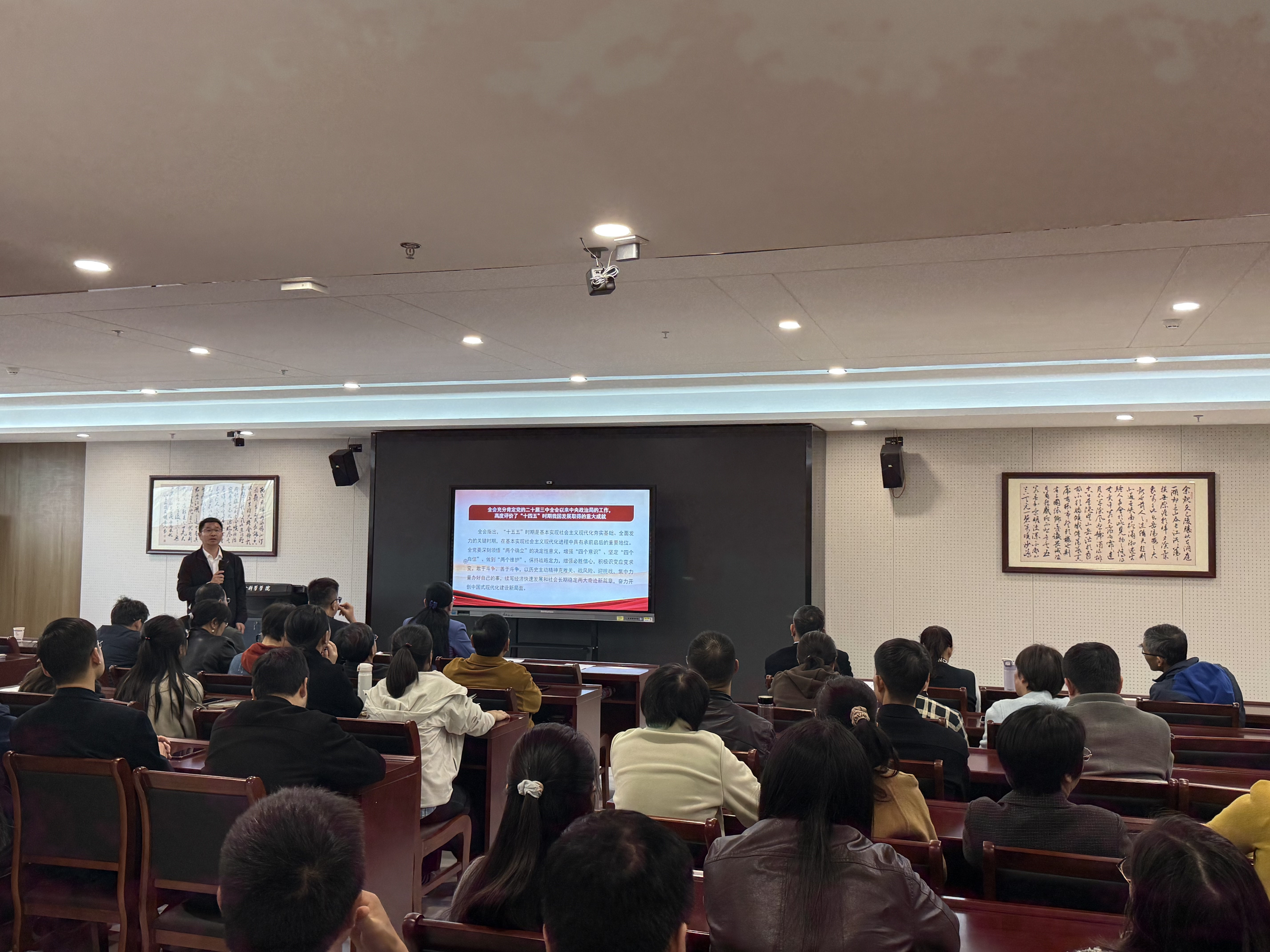 王少仁结合党的二十届四中全会公报要点学习,阐释了二十届四中全会召开的背景、主要内容及重大意义。他指出,党的二十届四中全会明确了“十五五”时期经济社会发展的指导方针和主要目标,要更加紧密地团结在以习近平同志为核心的党中央周围,为基本实现社会主义现代化而共同奋斗,不断开创以中国式现代化全面推进强国建设、民族复兴伟业新局面。全院上下把深入学习贯彻党的二十届四中全会精神,深刻领悟“两个确立”的决定性意义,坚决做到“两个维护”,为实现学院高质量发展努力奋斗。