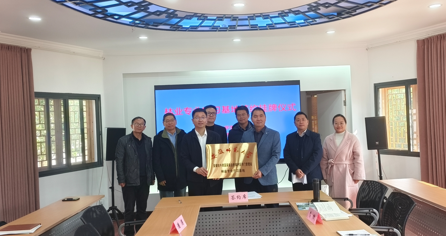 11月13日至14日,生命科学学院“林业专业实践基地”签约暨挂牌仪式分别在歙县清凉峰国家级自然保护区、安徽牯牛降国家级自然保护区祁门管理站及石台管理站相继举行。学院党委书记王少仁、副院长王鹏、林业专业学位硕士点负责人吴孝兵教授等与歙县、祁门县、石台县林业主管部门及各保护区管理站负责人共同出席了签约暨授牌仪式。