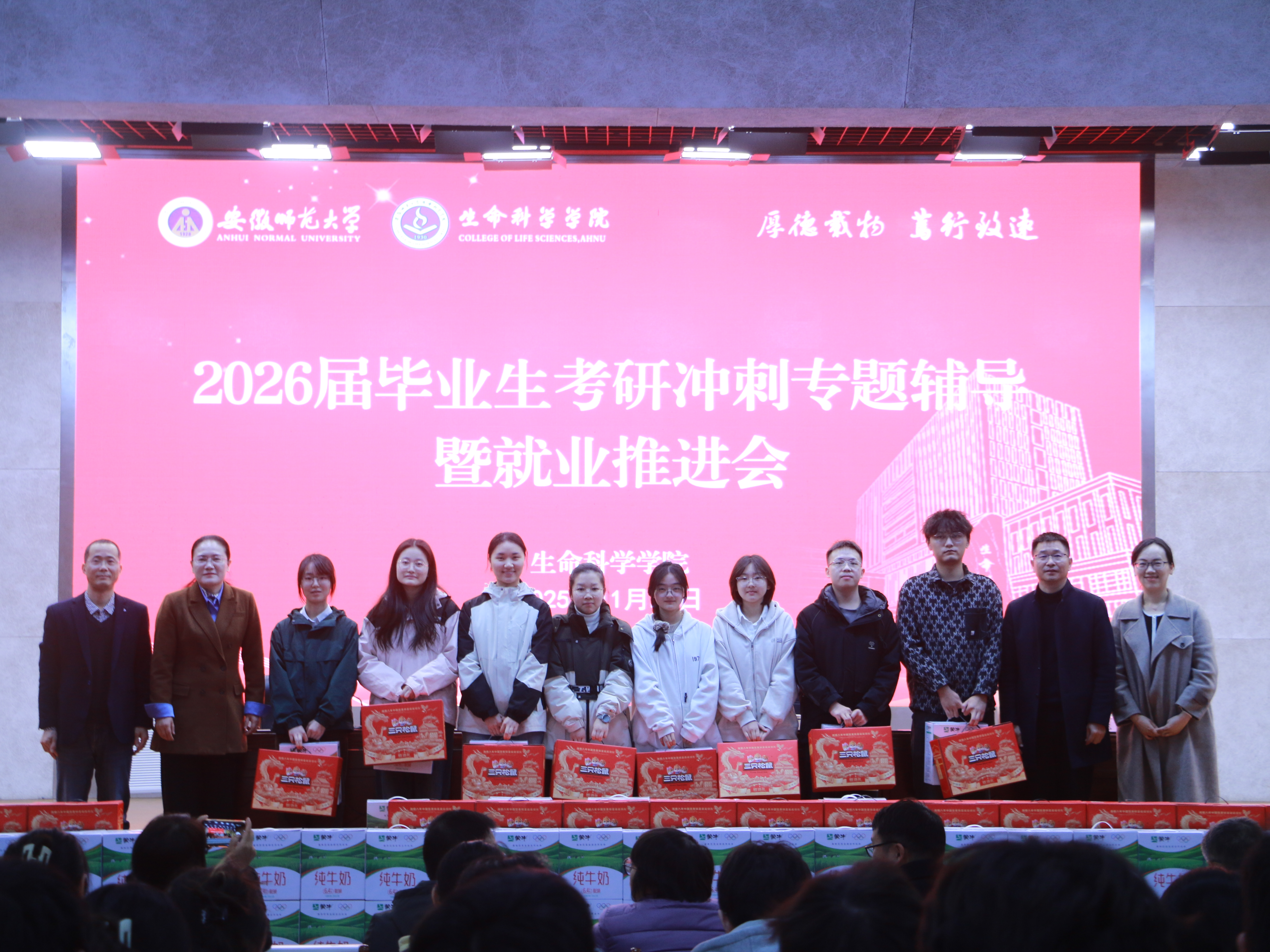为全面推进2026届毕业生就业工作,助力考研学子坚定信心、缓解备考压力,11月28日,生命科学学院于花津校区实习实训中心一楼报告厅召开2026届毕业生考研冲刺专题辅导暨就业推进会。生命科学学院长朱国萍、党委副书记孙月婷、教学副院长陈冬生、专业负责人代表、毕业班辅导员及全体毕业生参加会议,会议由学院党委书记王少仁主持。