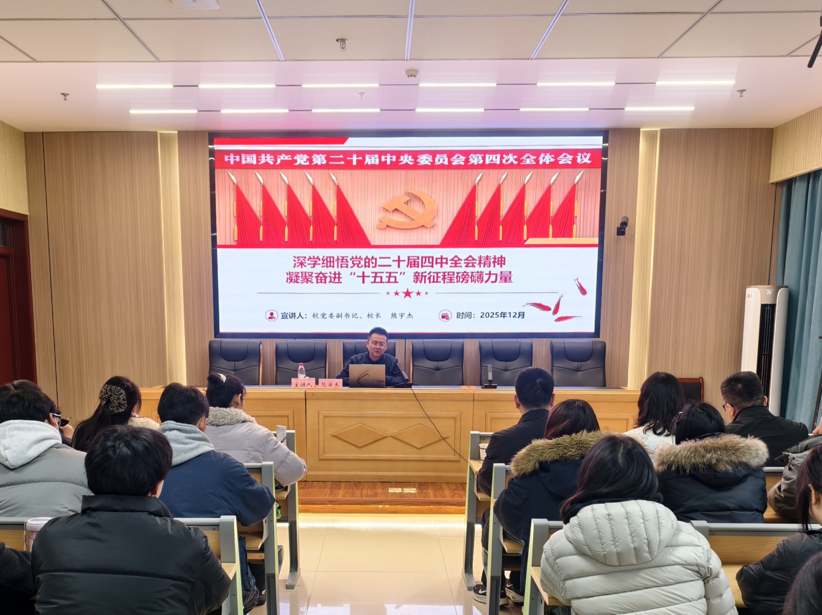 为深入学习贯彻党的二十届四中全会精神,12月19日下午,校党委副书记、校长熊宇杰在文典楼B108报告厅为生命科学学院师生讲授“形势与政策”课暨思政理论课。学院领导班子成员、学生代表及辅导员到场聆听,本次专题课由学院党委书记王少仁主持。