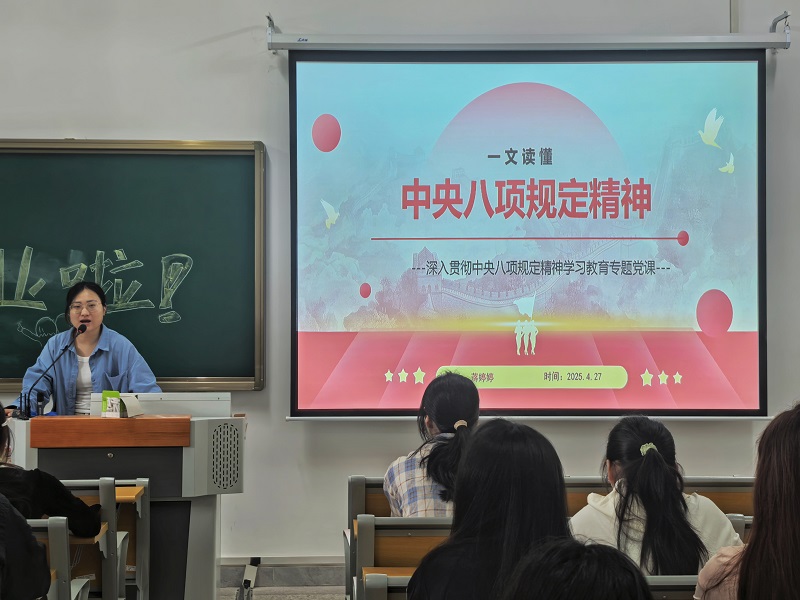 支部书记蒋婷婷从什么是中央八项规定、什么是中央八项规定精神、开展深入贯彻中央八项规定精神学习教育的重大意义等方面进行了解读。支部全体党员共同学习了《习近平关于加强党的作风建设论述摘编》,赵慧君和梁爽两位同志在进行了研讨发言。
