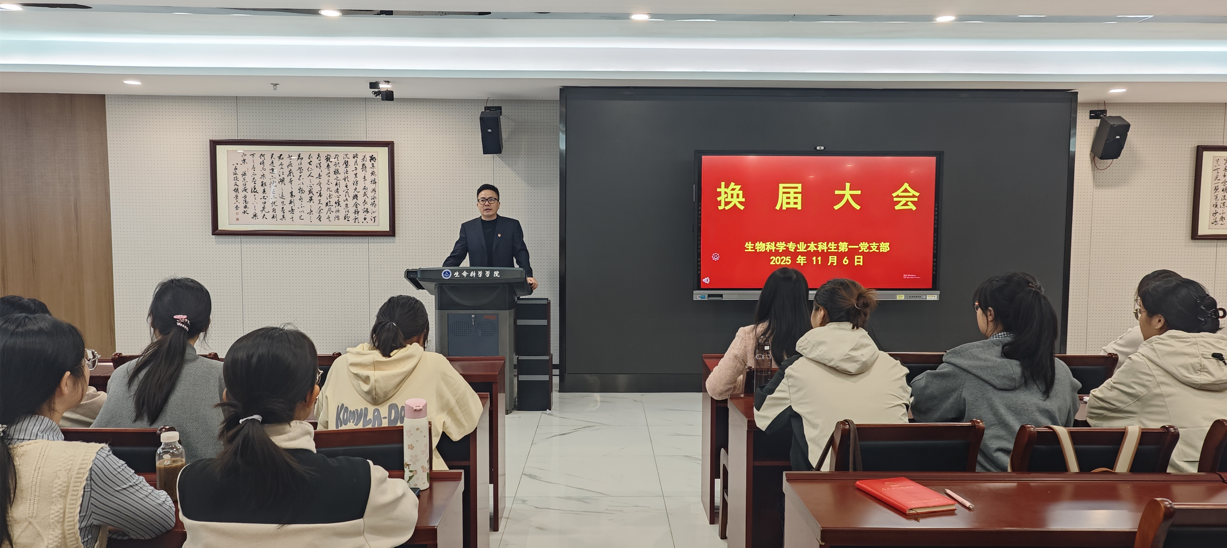 11月6日,生物科学专业本科生第一党支部在清源楼A227会议室召开换届选举大会。院党委委员、副院长王鹏到会指导选举工作,支部全体党员11人参会,会议由支部书记王志主持。