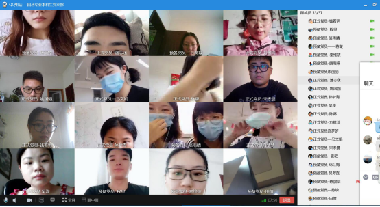 基于疫情期间特殊需求,利用学校返校完成实验课的契机,分批次对上半年预备期满党员进行讨论、审议。本次采用了线上线下相结合的视频会议模式,支部应到党员37人、实到36人,应到正式党员22人、实到22人。
