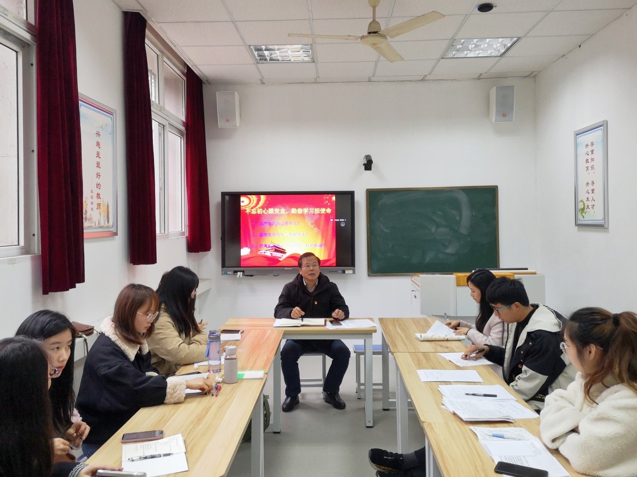 会后,涂老师为全体党员上了一堂“不忘初心跟党走,勤奋学习担使命”的主题党课。涂老师联系自身30多年的教育工作实际,从“共产党的初心是什么、教师党员为什么要跟党走、教育硕士研究生肩负的使命是什么”三个方面展开论述,希望全体教育硕士研究生党员不忘教书育人初心,意志坚定跟党走,勤奋学习教书育人本领,担负起“为党育人,为国育才”的使命,为实现中华民族的伟大复兴奉献自己的青春和才智!