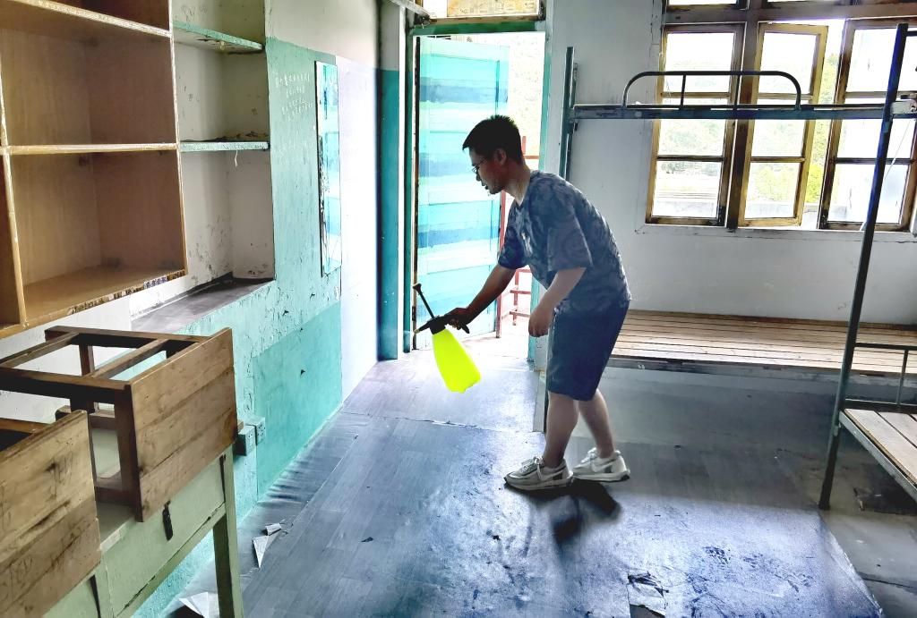 在活动过程中,党员及入党积极分子始终牢记党训,发扬不怕脏、不怕累的工作精神,积极认真的为洁净宿舍尽自己最大一份力量。在明确各自责任区域后,大家分工协作,不仅对地面、书桌、衣柜等进行了打扫,而且对宿舍进行了消毒。通过大家的努力,新生宿舍焕然一新,洁净如初。