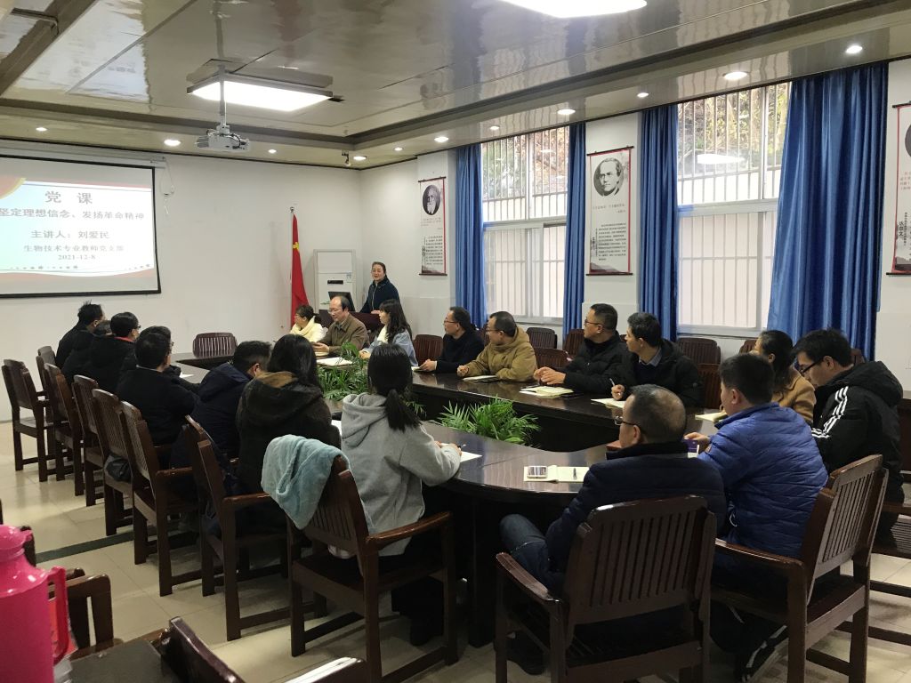 本网讯(生科院 王旭)2021年12月8日下午,生物技术专业教师党支部开展党课活动。党课由支部书记刘爱民主讲,主题为《坚定理想信念 发扬革命精神》。