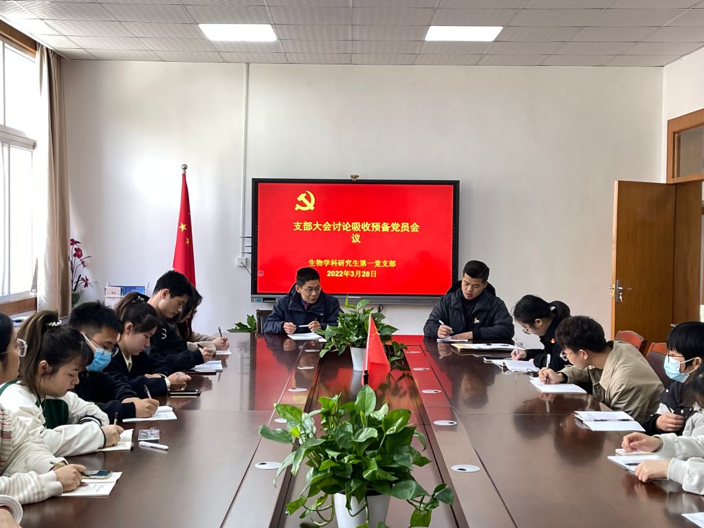 3月28日上午,生物学科研究生第一党支部于生化楼前二楼会议室召开支部大会,讨论了发展党员及预备党员转正工作。党支部书记魏泽坤主持支部大会。