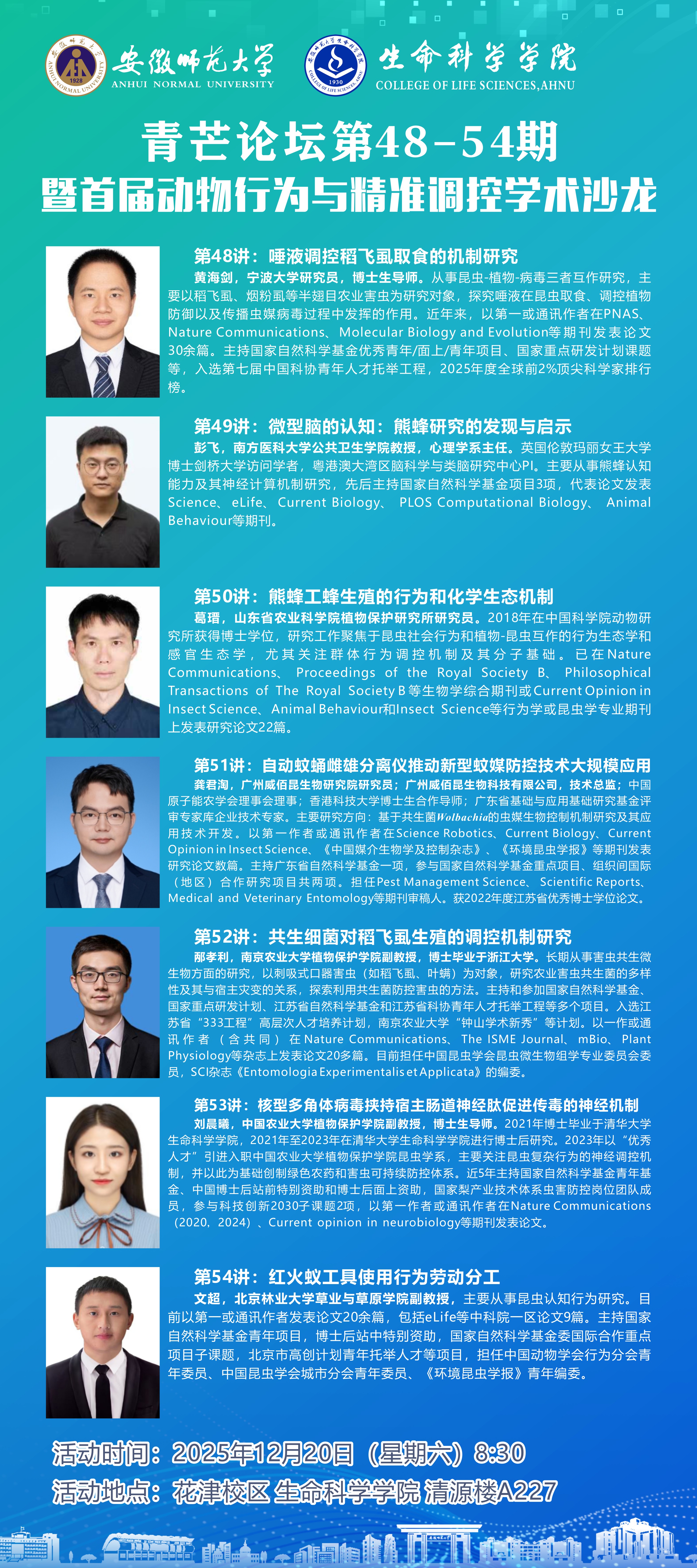 【学术预告】青芒论坛第48-54期暨首届动物行为与精准调控学术沙龙